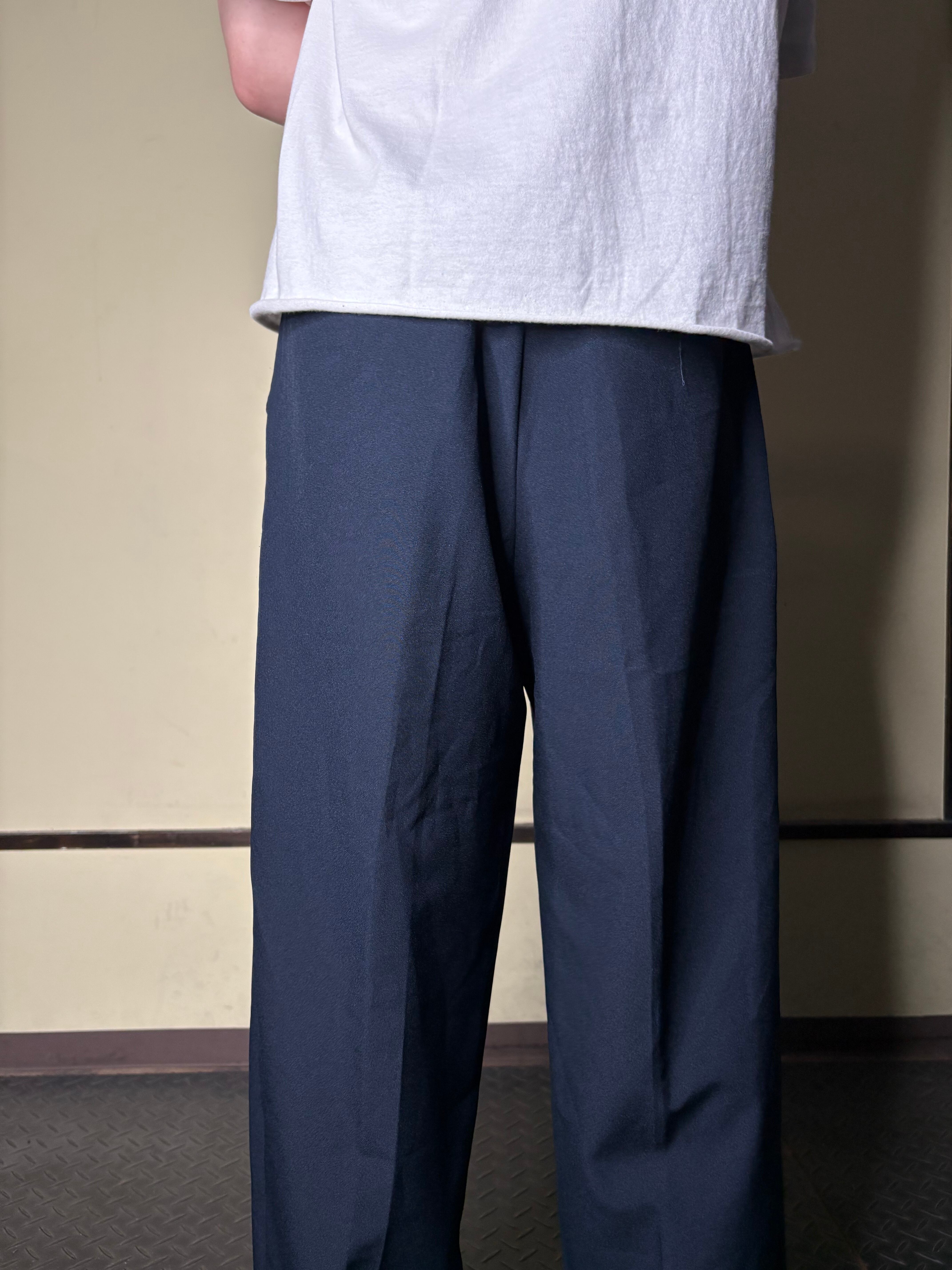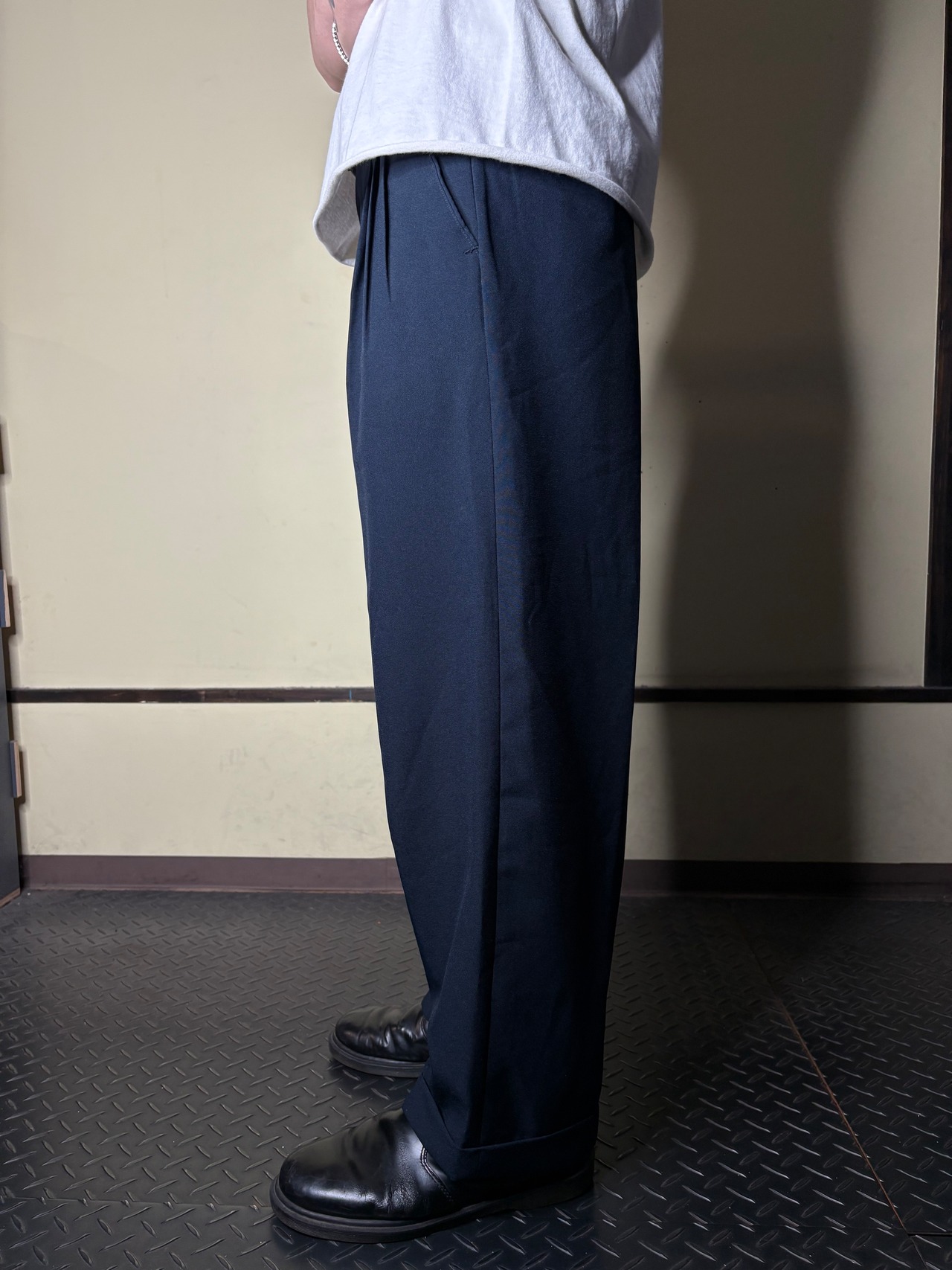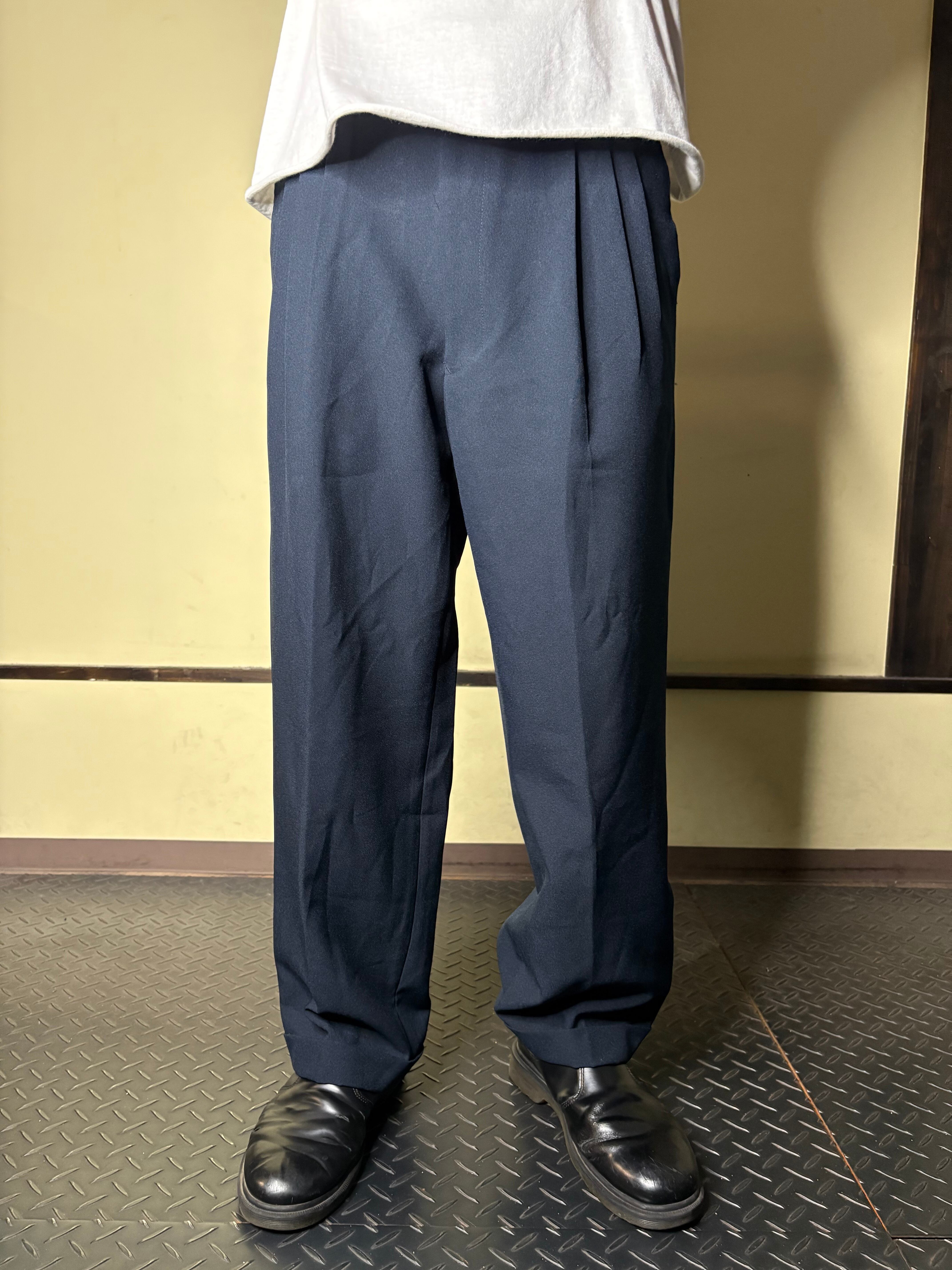 ネイビーで太いスラックス案外見ない気がします。