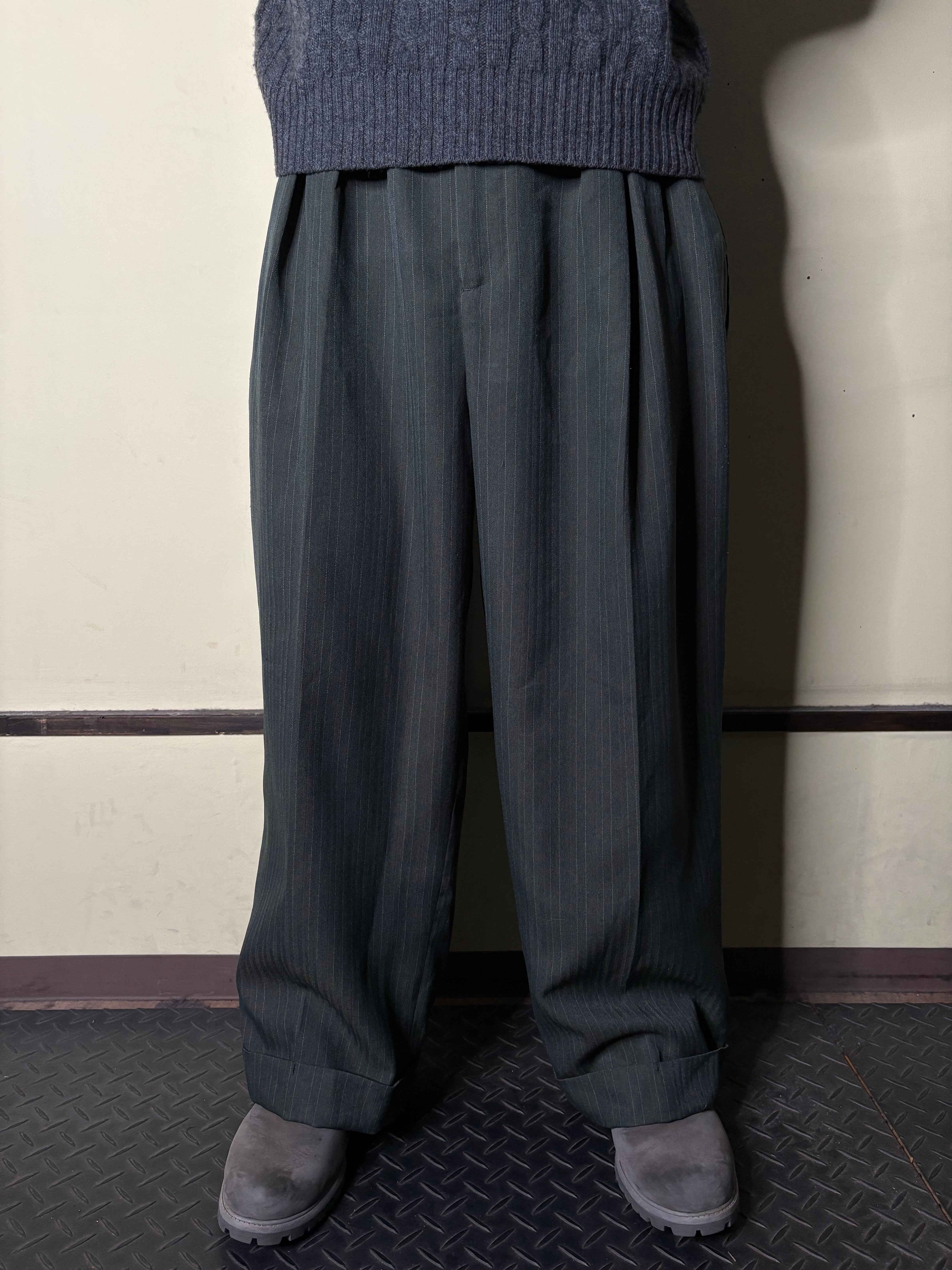 暗めのグリーンにストライプ。洒落てます。