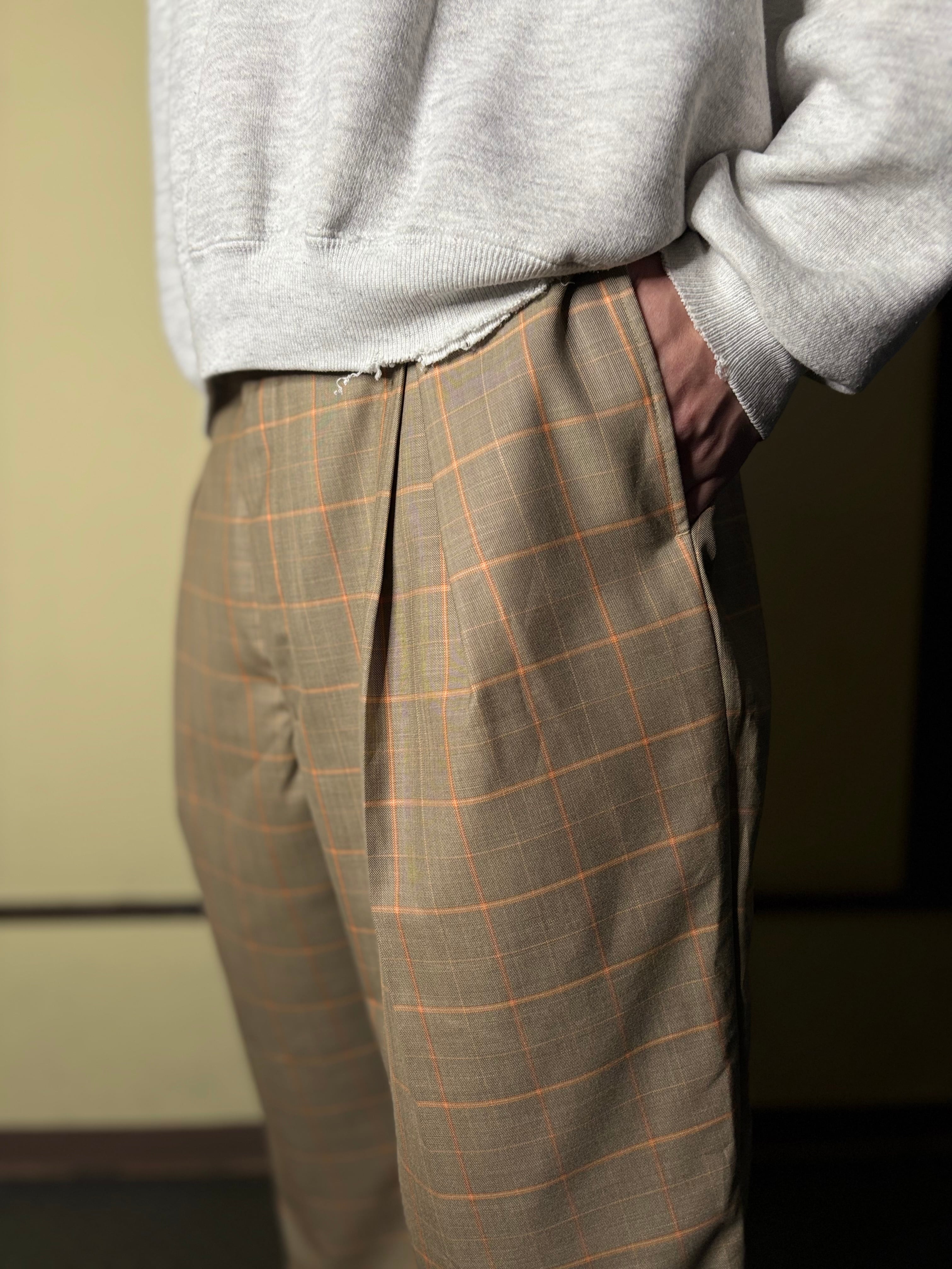 ベージュにオレンジチェック。洒落てます。
